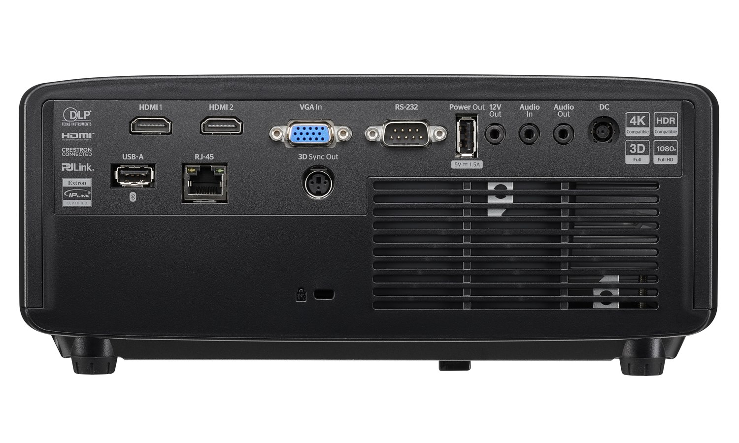 | Aansluitingen | Ingangen: 2 x HDMI 2.0, 1 x VGA Uitgangen: 1 x Audio 3,5 mm mini-jack, 2 x USB-A power 1,5 A Aansturing: 1 x RS232, 1x 12V trigger, 1 x RJ45, 1 x 3D sync |